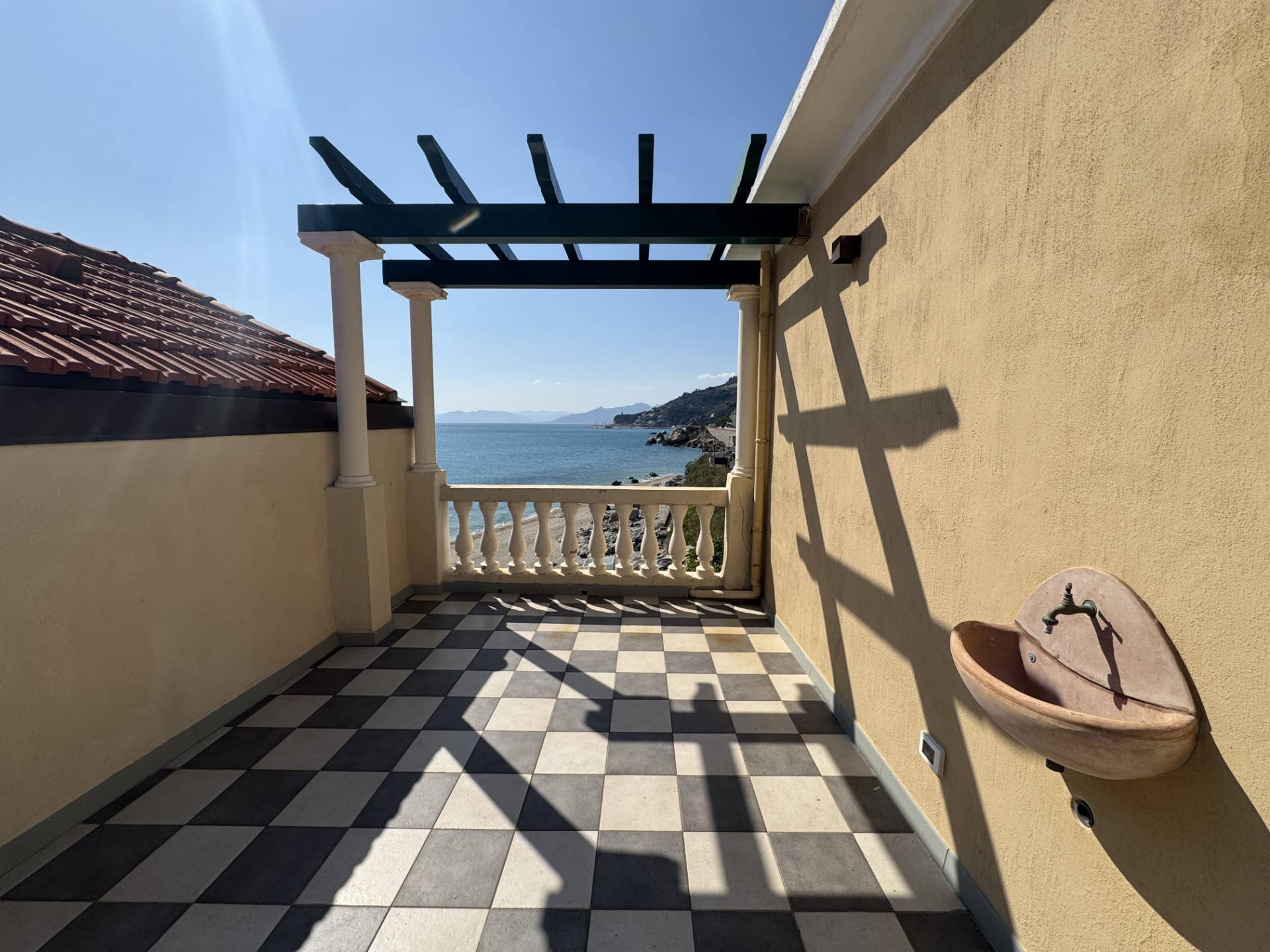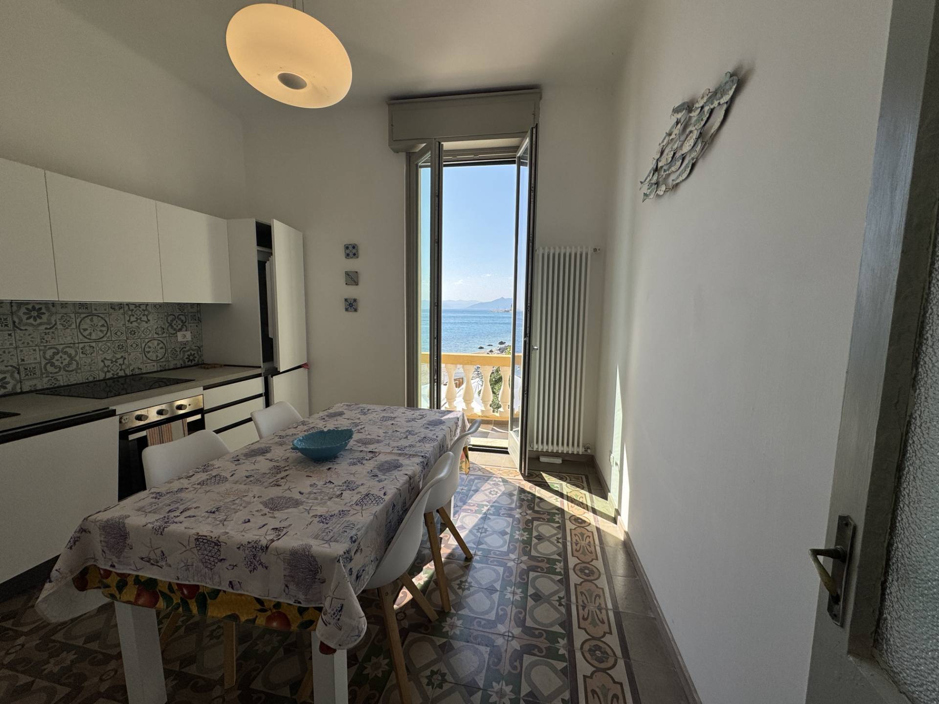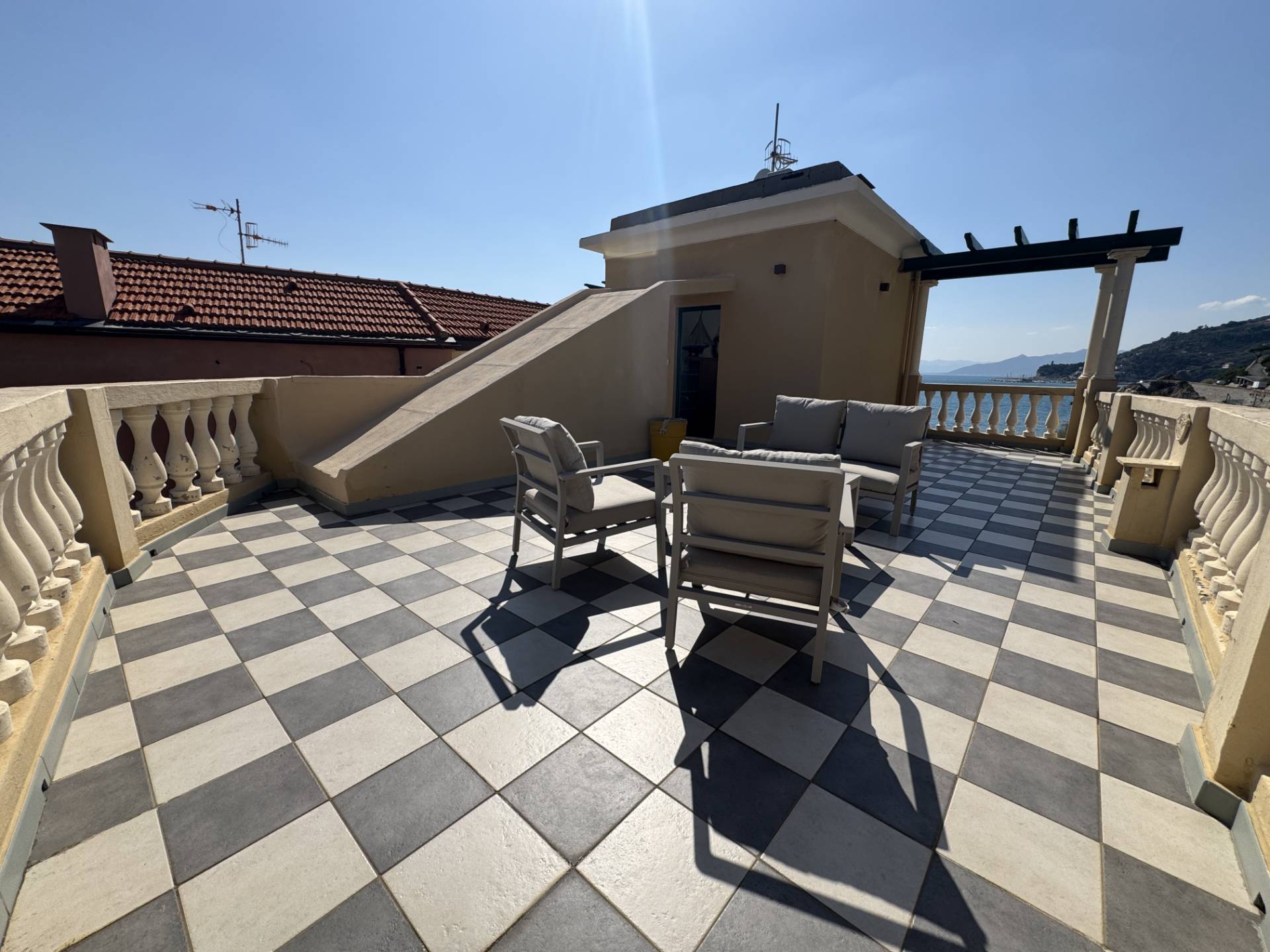 RIF. 1766 - Nella rinomata cittadina di Varigotti, in palazzo d'epoca affacciato sul mare, terracielo disposto su due livelli con grande terrazzo affacciato sul mare. La casa è composta come segue: PIANO TERRA - ampio ingresso con bagno; PIANO PRIMO - soggiorno, cucina abitabile, camera da letto con bagno privato, ripostiglio, balcone, disimpegno con scala d'accesso al PIANO SECONDO con locale uso seconda camera/studio ed ampio terrazzo con vista meravigliosa sul mare e sulla baia. L'immobile è libero su tre lati con esposizione nord est ovest. Pavimentazione in ceramica e graniglia decorata genovese, serramenti in doppio vetro pvc, riscaldamento autonomo. La posizione rende questa casa unica nel suo genere. R.C. € 606,84.