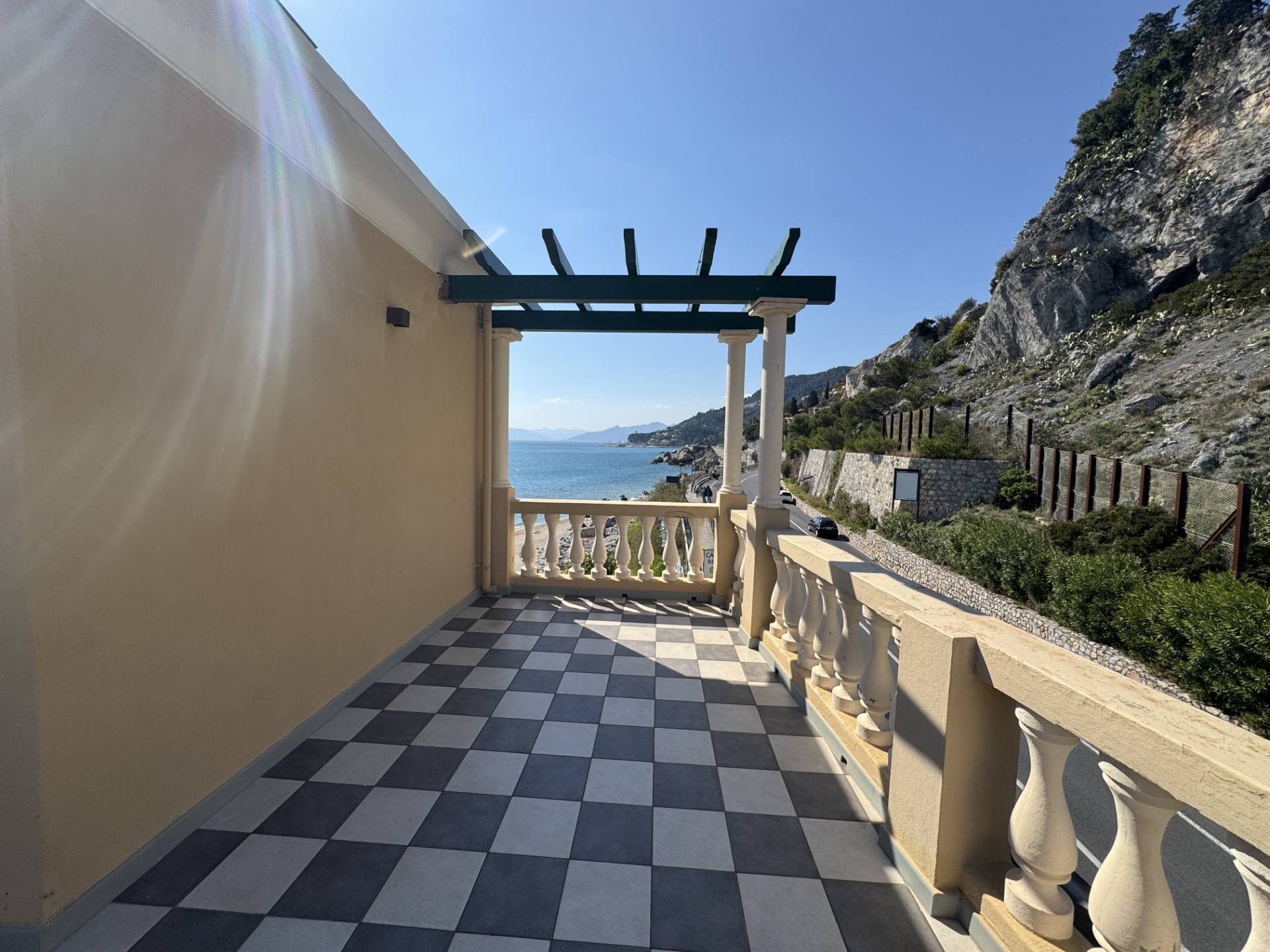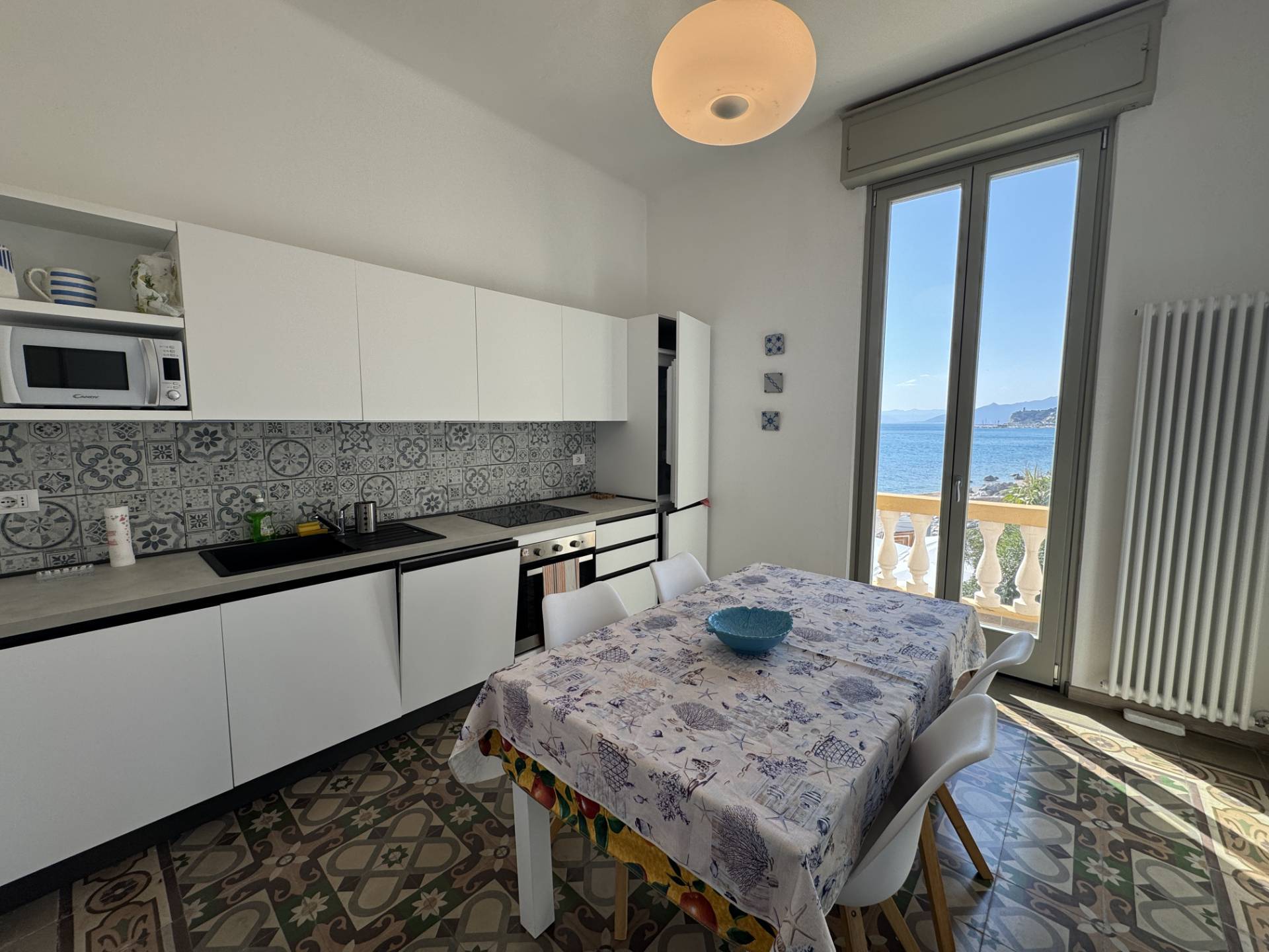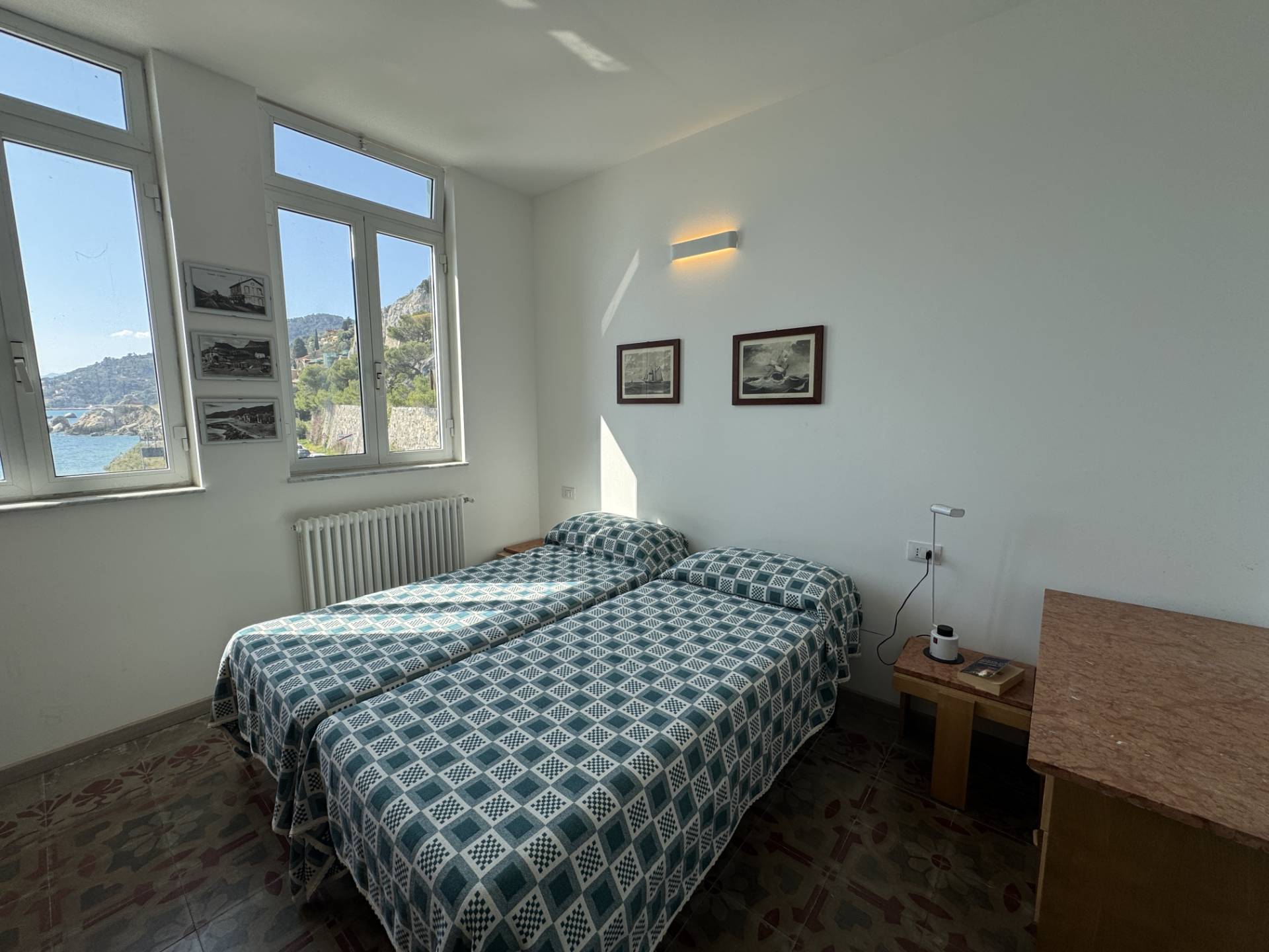 RIF. 1766 - Nella rinomata cittadina di Varigotti, in palazzo d'epoca affacciato sul mare, terracielo disposto su due livelli con grande terrazzo affacciato sul mare. La casa è composta come segue: PIANO TERRA - ampio ingresso con bagno; PIANO PRIMO - soggiorno, cucina abitabile, camera da letto con bagno privato, ripostiglio, balcone, disimpegno con scala d'accesso al PIANO SECONDO con locale uso seconda camera/studio ed ampio terrazzo con vista meravigliosa sul mare e sulla baia. L'immobile è libero su tre lati con esposizione nord est ovest. Pavimentazione in ceramica e graniglia decorata genovese, serramenti in doppio vetro pvc, riscaldamento autonomo. La posizione rende questa casa unica nel suo genere. R.C. € 606,84.